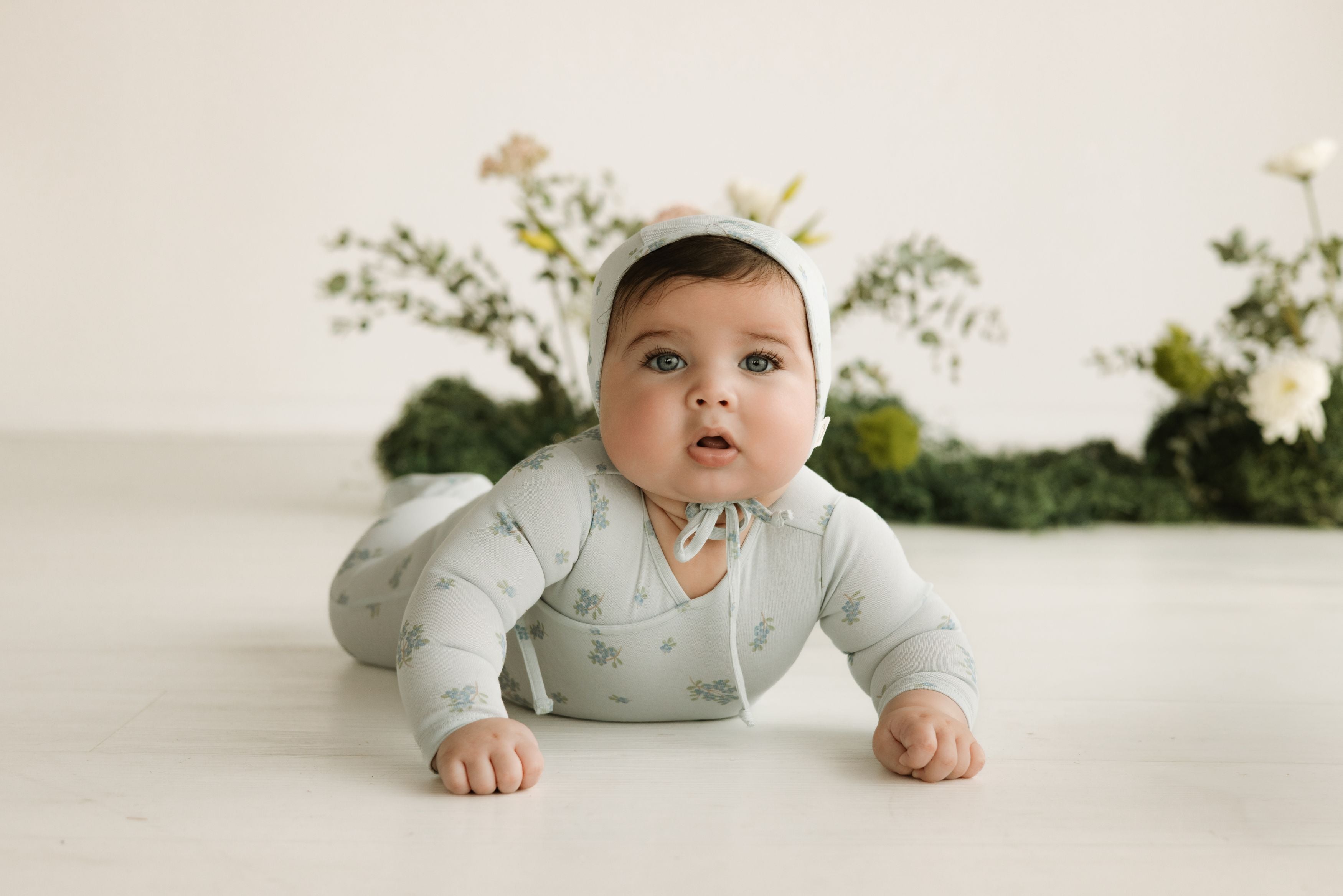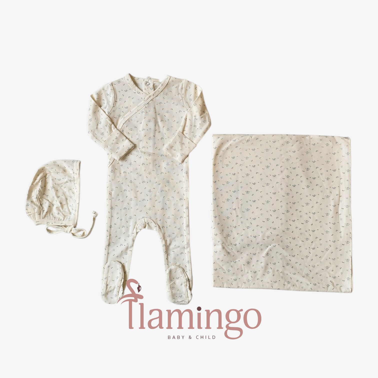 Lilette Cream\Blue Floret Print Footie Set