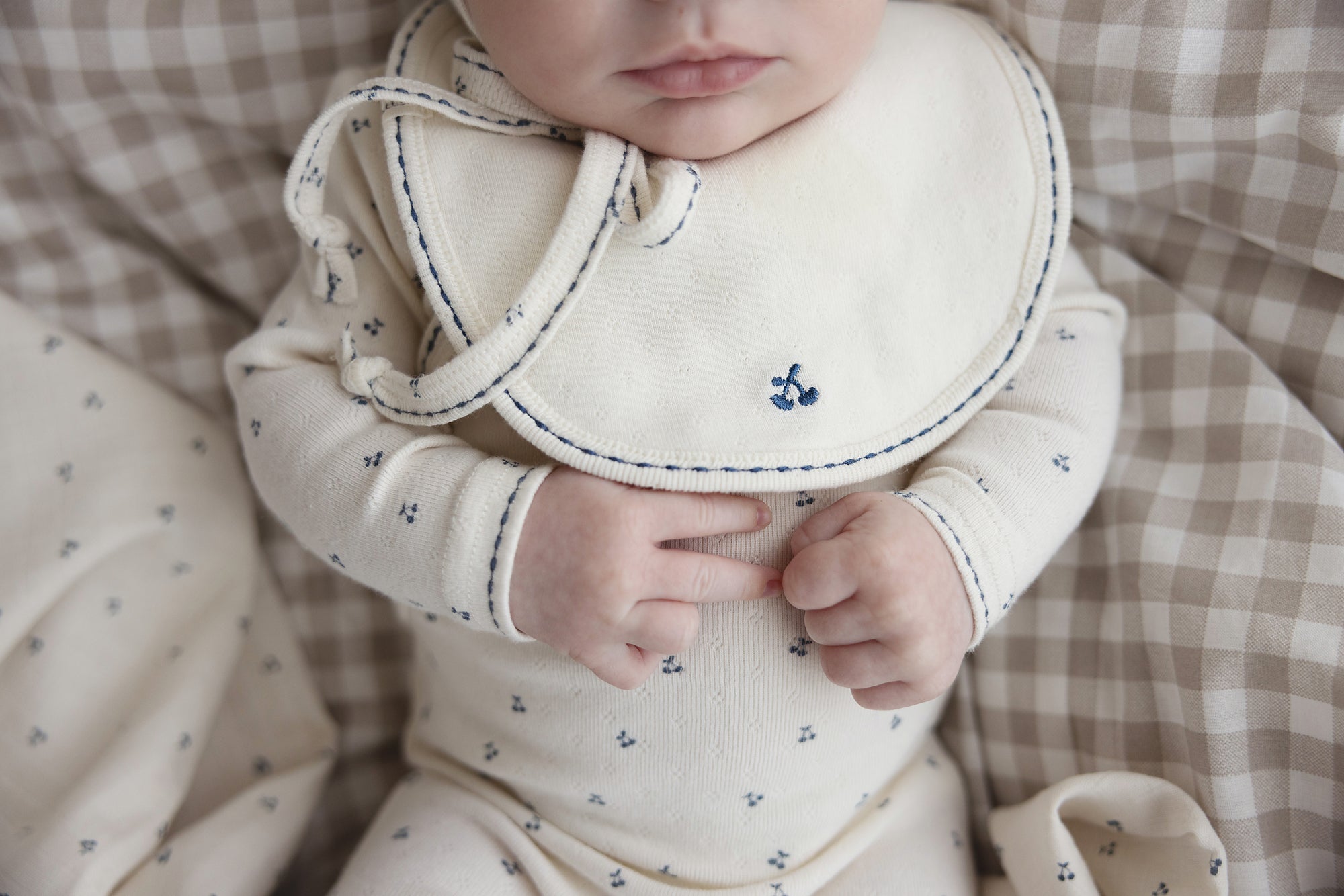 Lilette Cherry Scallop Footie Set With Bib