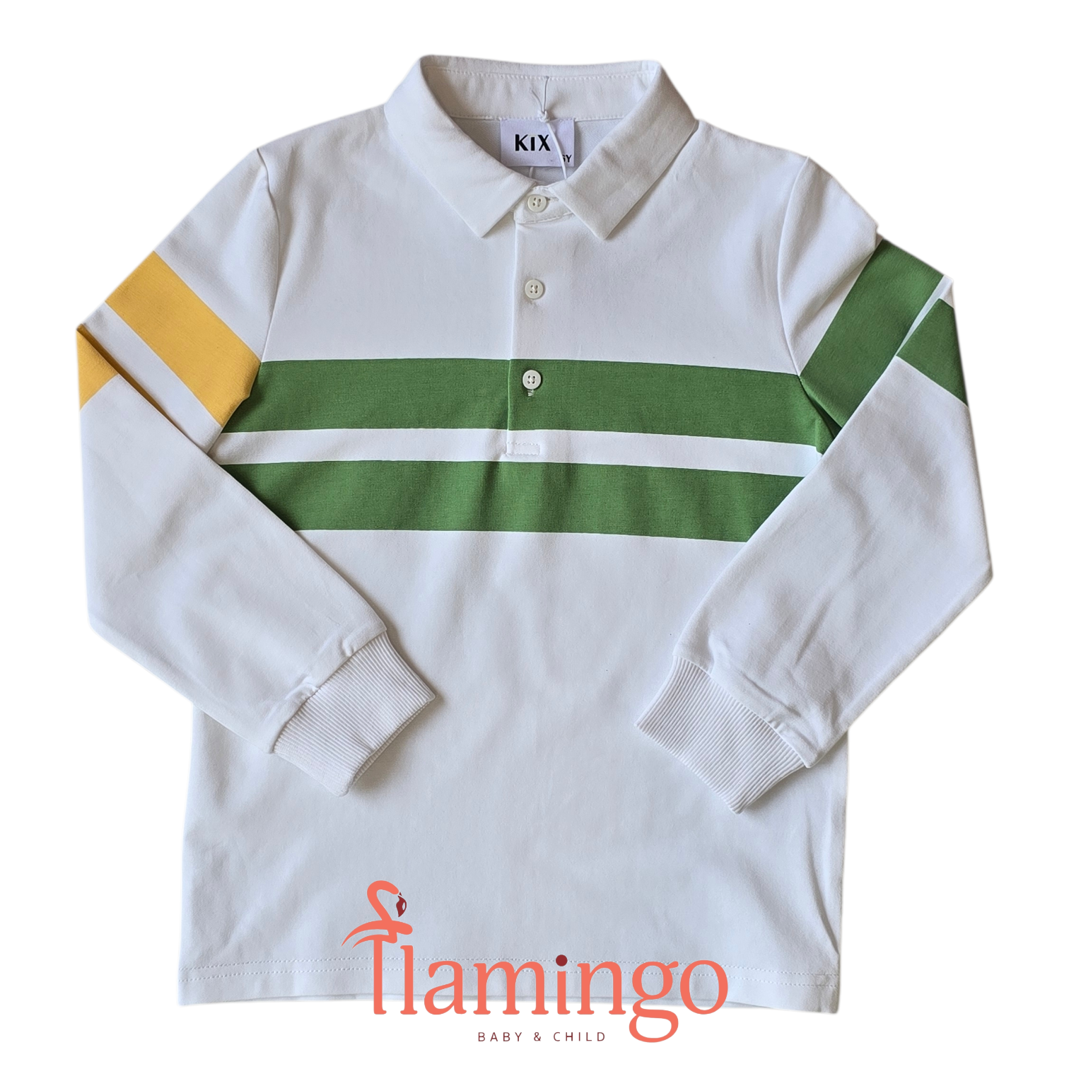 Kix White\Green\Yellow Long Sleeve Polo