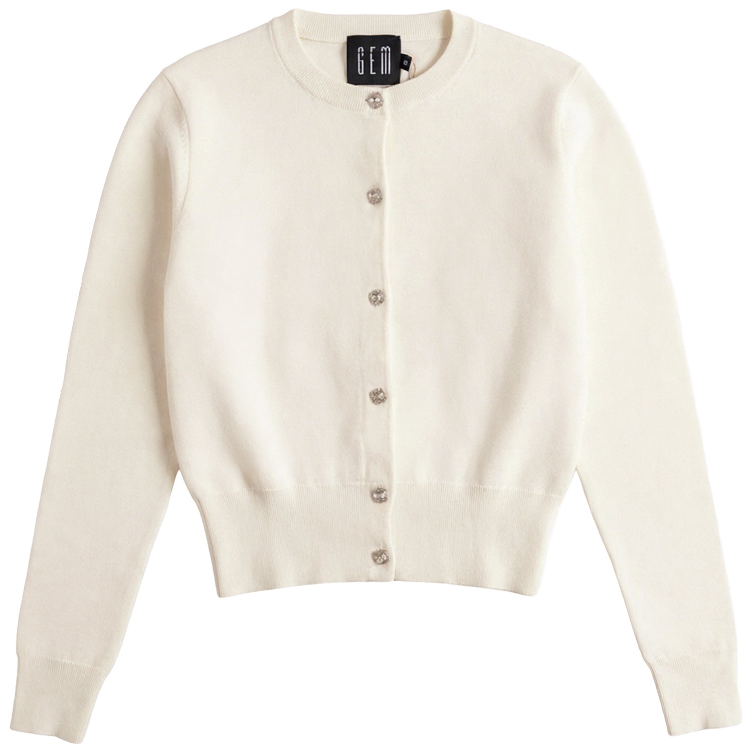 Gem Cream Rhinestone Button Cardigan