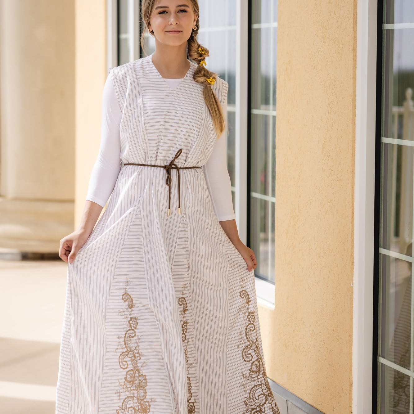Laurent Floral Printed Dress With Striped Combo Belt