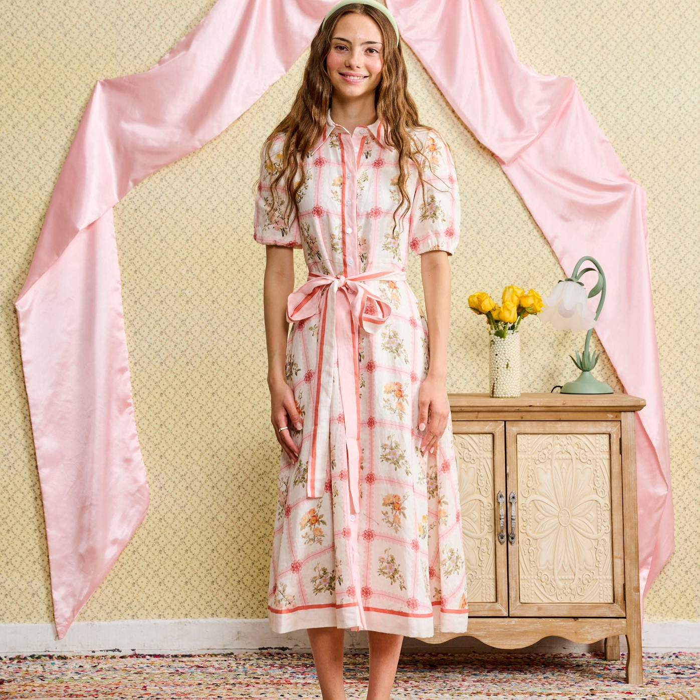 Laurent Floral Print Button Down Belted Dress