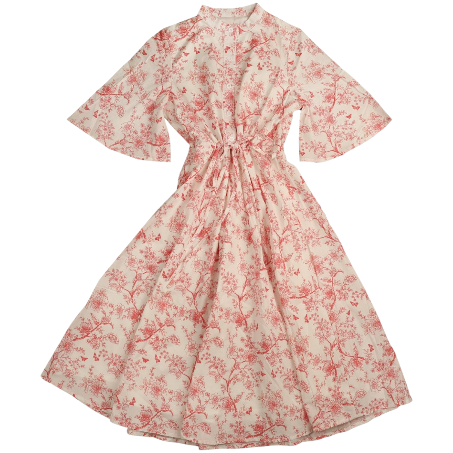 Noma Coral Toile Print Waisted Dress