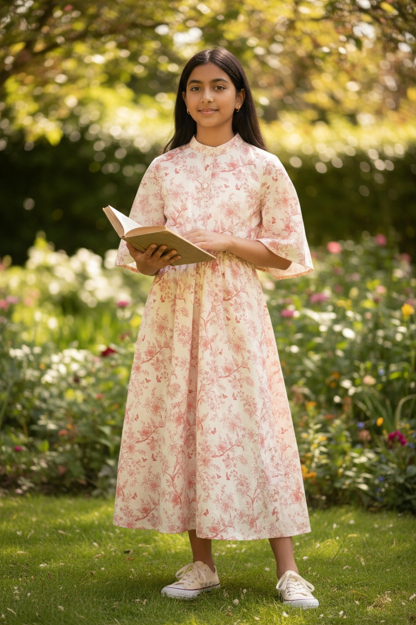 Petite Amalie Teen Lilac Floral Shirred Waist Dress