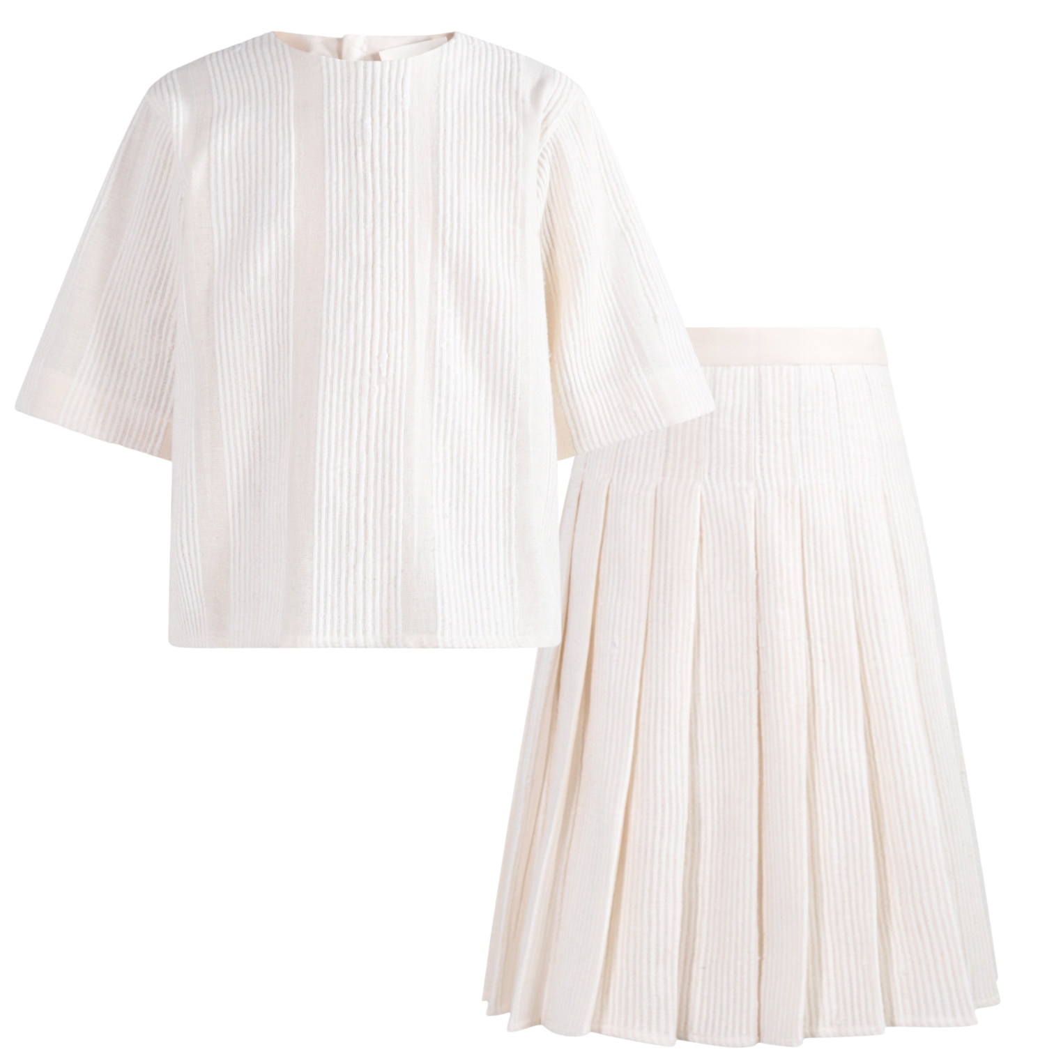 TNTRM White Rewoven Pleated Skirt Set