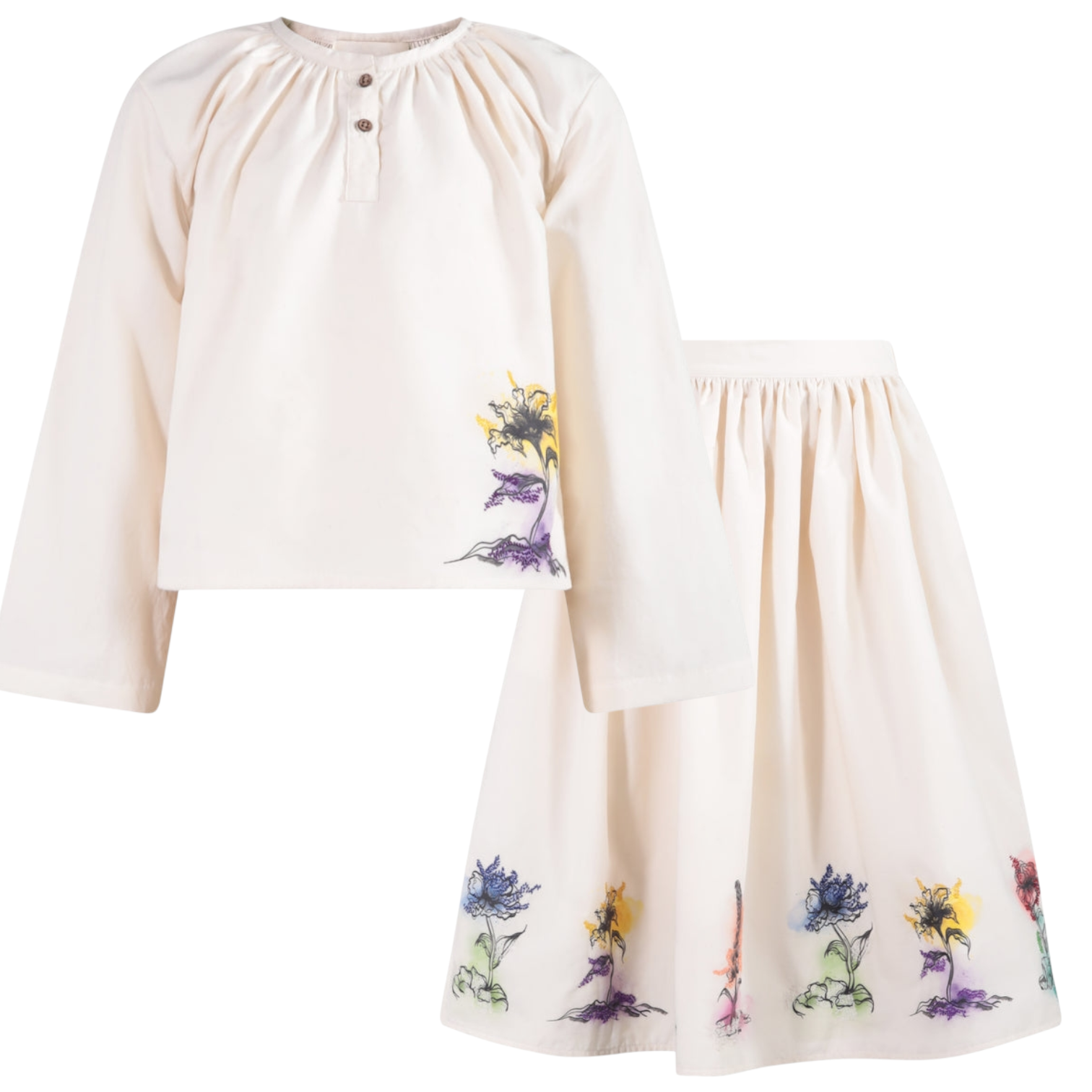TNTRM White With Floral Print Skirt Set